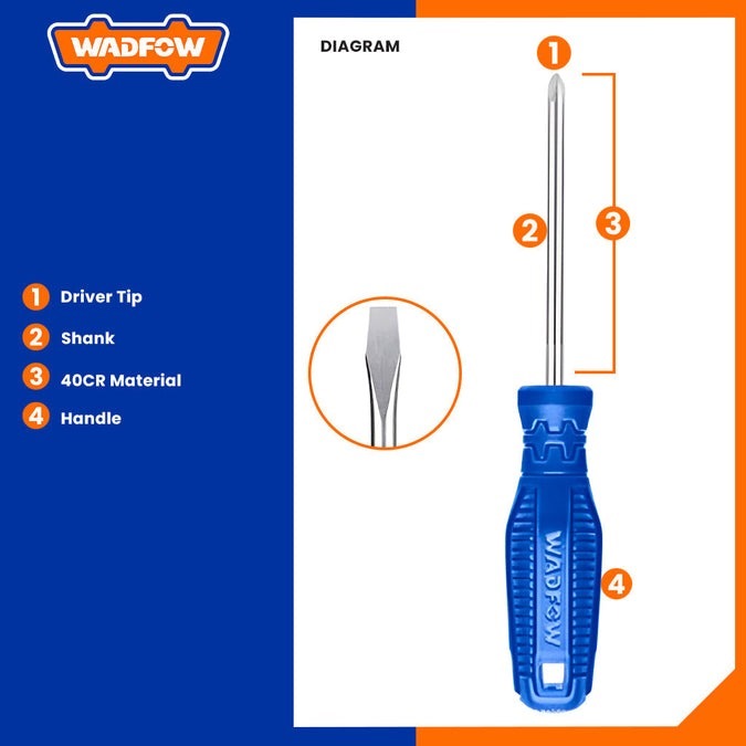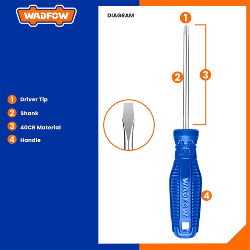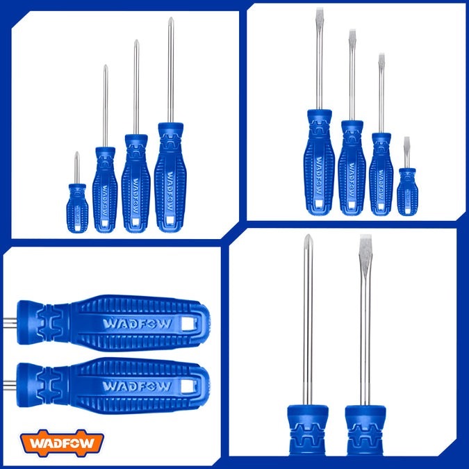 Home » Hand Tools » Screwdrivers & Nut Drivers » WADFOW 8PCS [2X38, 2X75 & 4X100MM] (-) & (+) SCREWDRIVER SET WSS2208