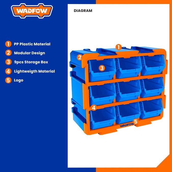 Home » Ladders, Trolleys & Storage » Toolboxes, Tool Bags & Work Benches » WADFOW MODULAR STORAGE TOWER W/9 BINS 380X170X320MM WTB8330