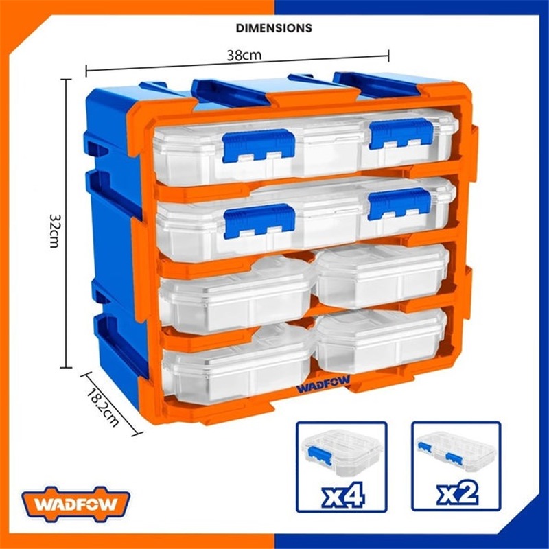 Home » Ladders, Trolleys & Storage » Toolboxes, Tool Bags & Work Benches » WADFOW 6 PCS TRANSPARENT ORGANIZER TOWER 4XWTB8341+2X8342 WTB8346