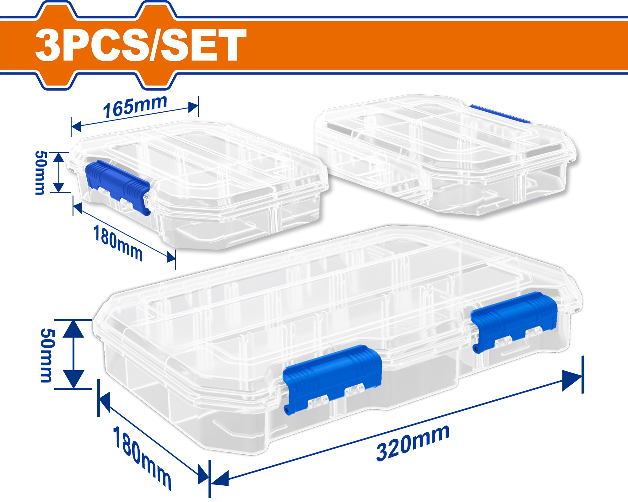 Home » Ladders, Trolleys & Storage » Storage Boxes & Plastic Containers » WADFOW TRANSPARENT ORGANIZER 3 PCS SET 2XWTB8341+1X8342 WTB8343