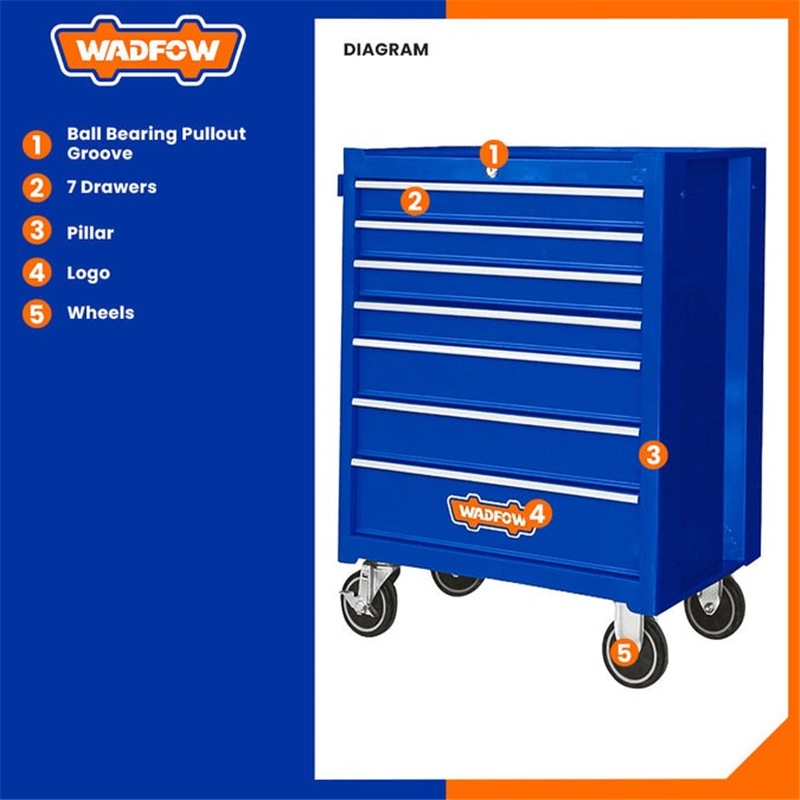 Home » Ladders, Trolleys & Storage » Toolboxes, Tool Bags & Work Benches » WADFOW 7 DRAWERS ROLLER CABINET 688X458X735MM WCS2A07