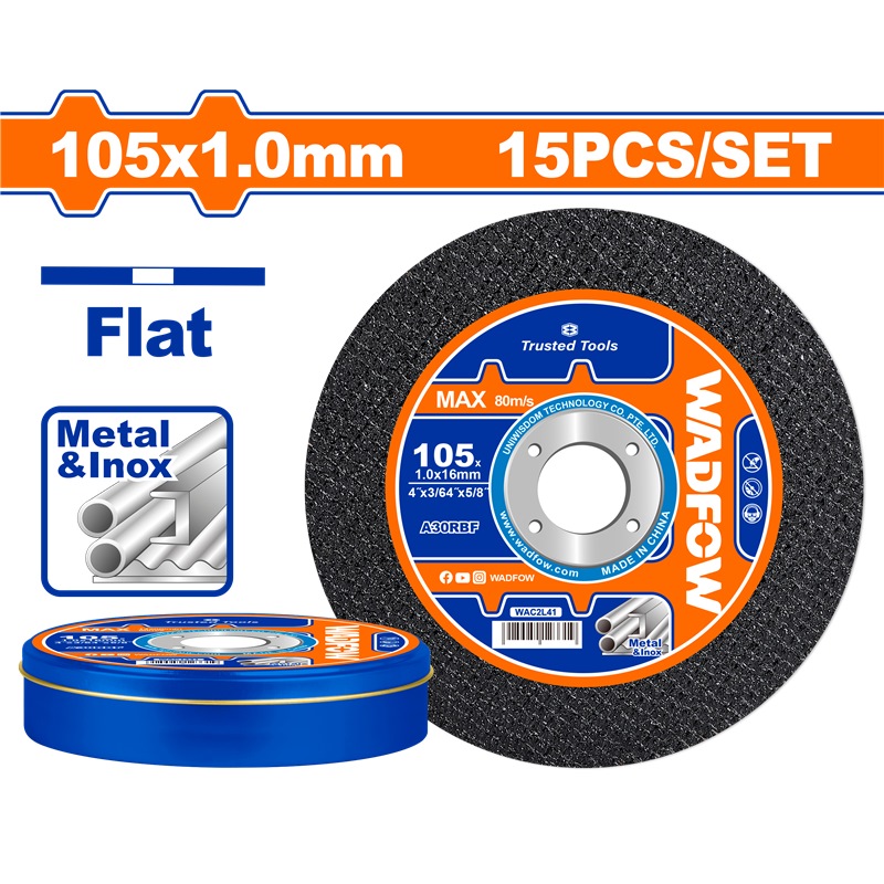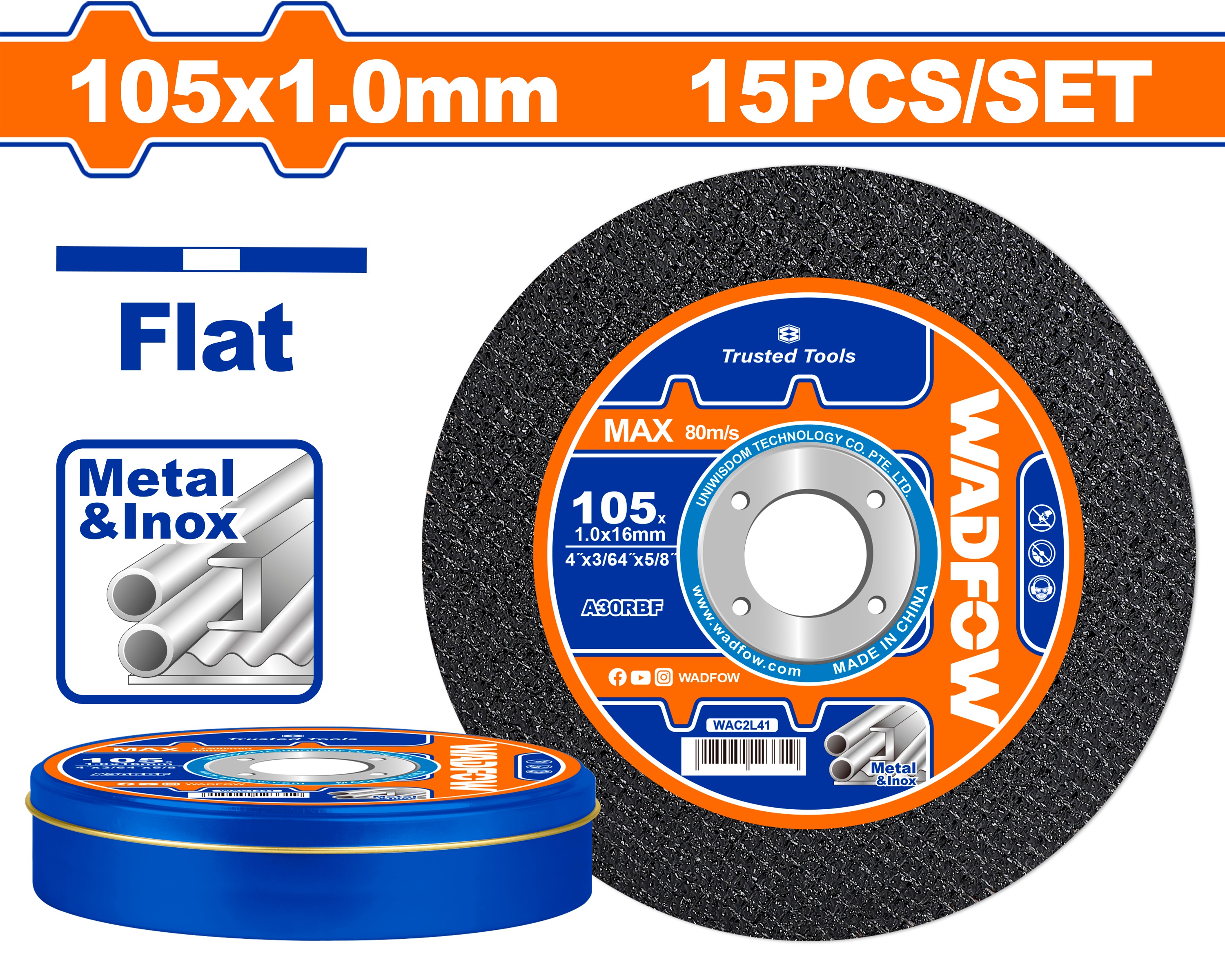 WADFOW ABRASIVE CUTTING DISC 105X1.0X16MM 15PCS IN METAL BOX WAC2L41