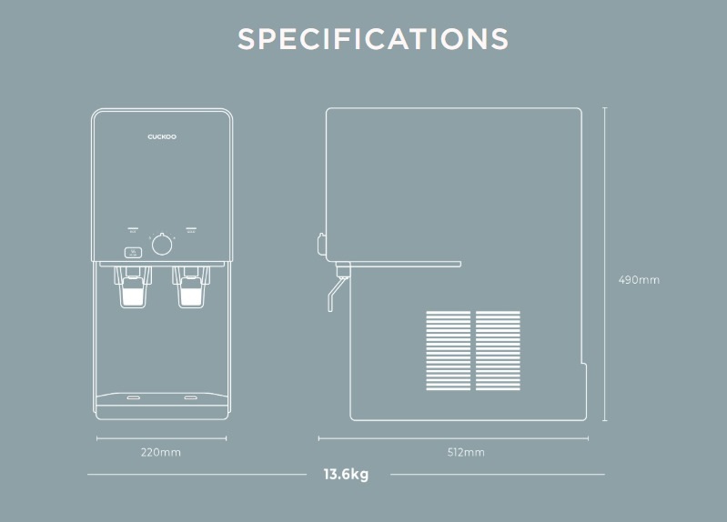 Home » Bathroom & Kitchen » Water Purifiers, Dispensers & Filters » CUCKOO KING TOP 2 WATER PURIFIER 2.3L TANK (CP-AEN501HW)