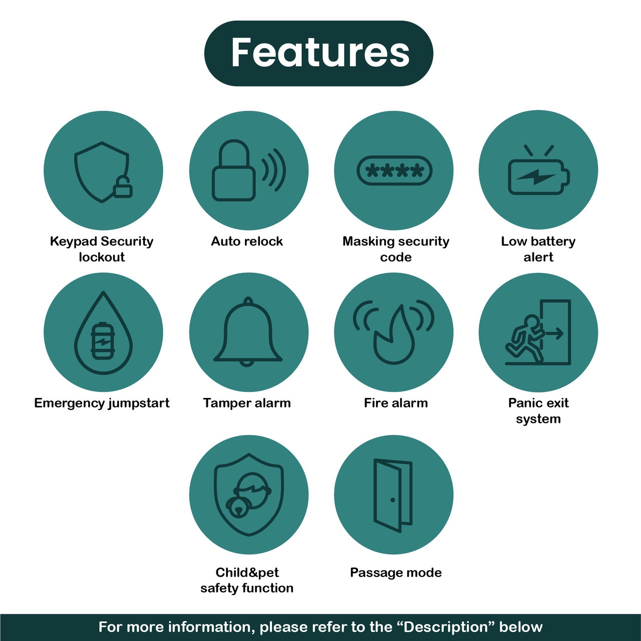 Child & pet safety fuction, Prevent any accidental unlocks from inside by activating the safety fcution on the mortise's handle