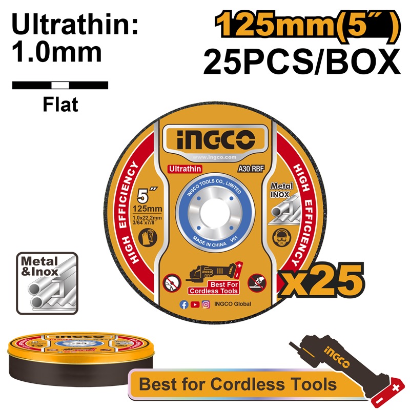INGCO ABRASIVE CUTTING DISC 125X1.0MM 25PCS METAL BOX MCD1012525