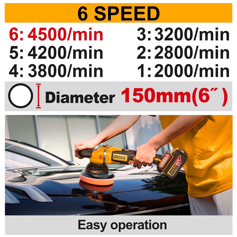 INGCO 42V BL 6" POLISHER 1X2.0AH & BAG APLI42151