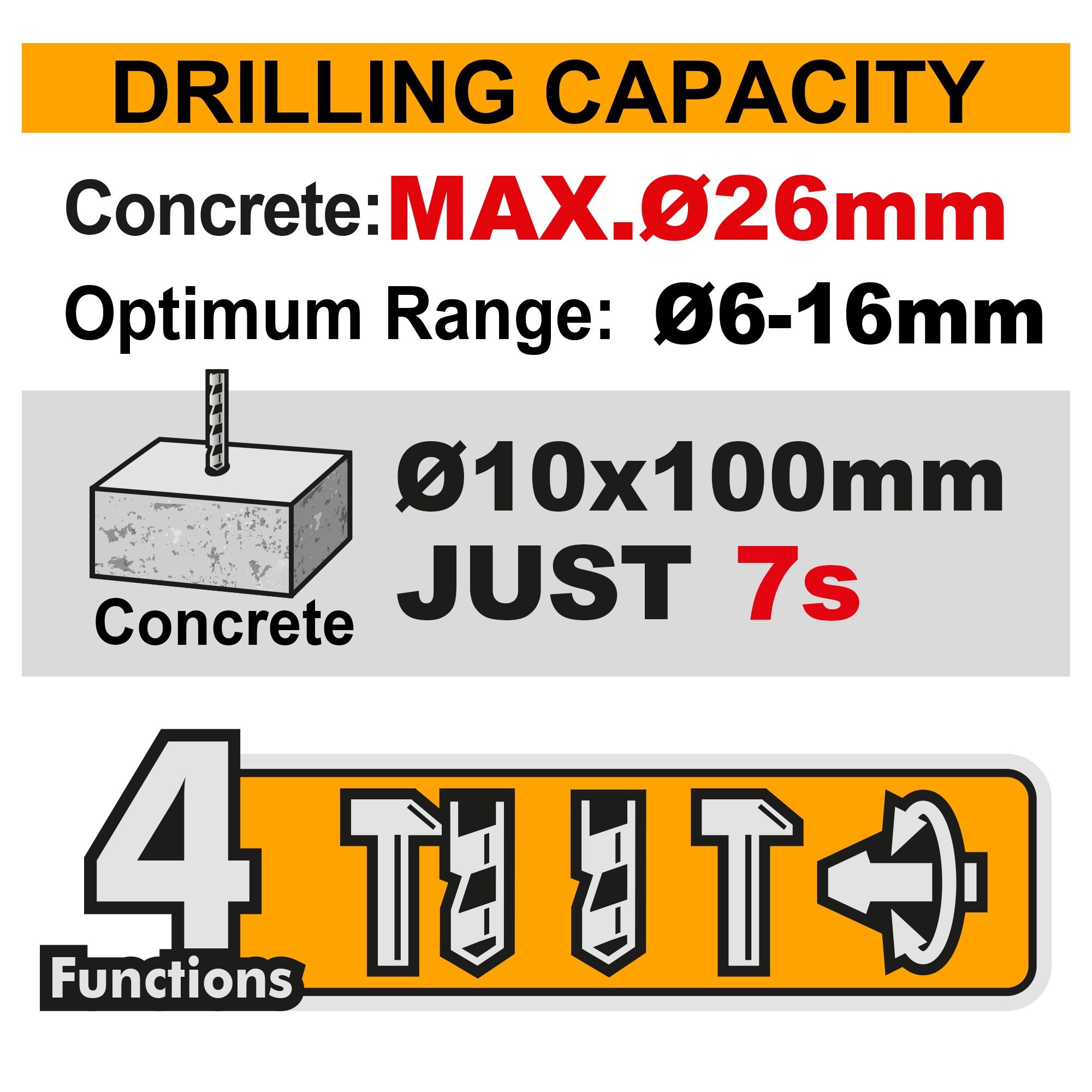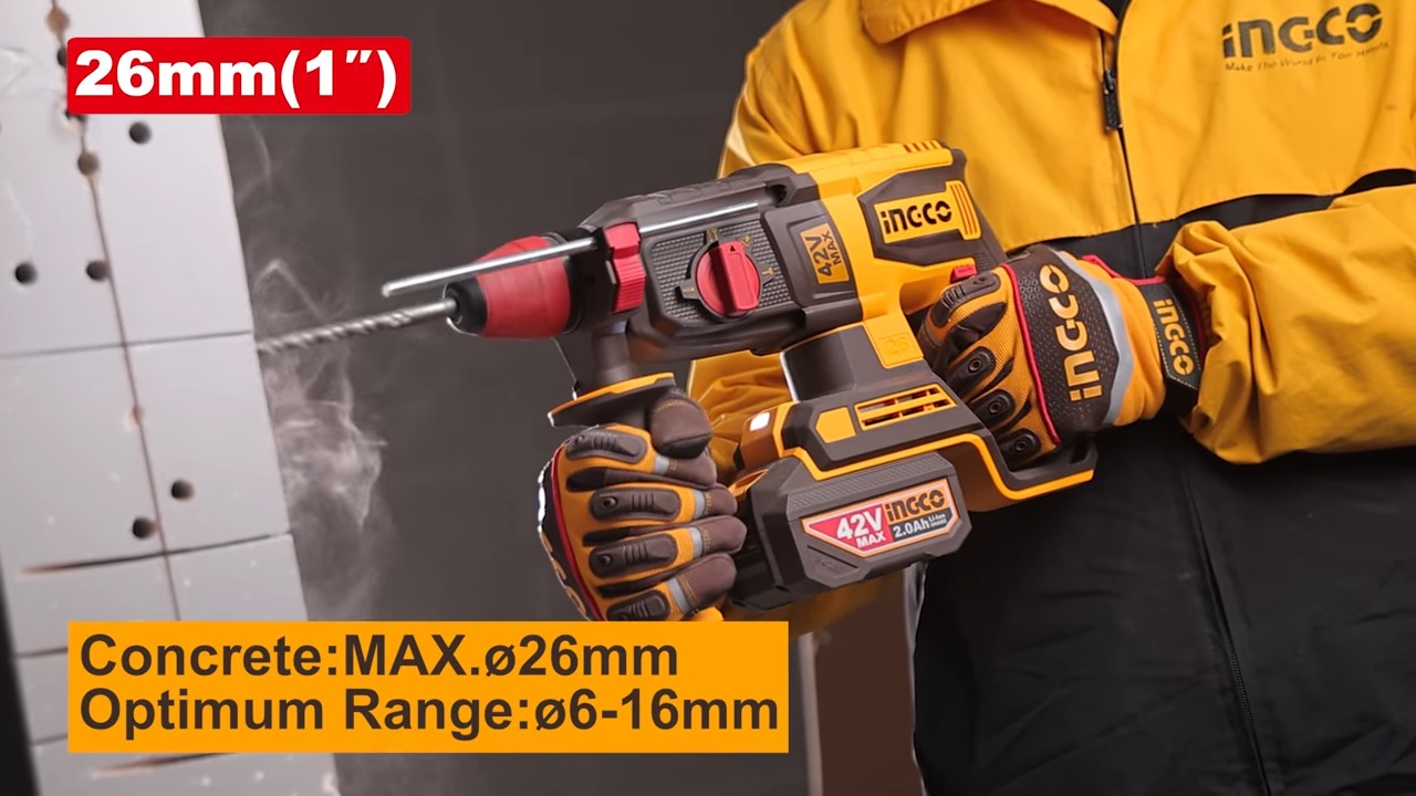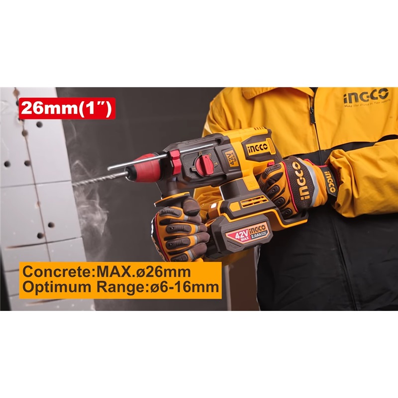 INGCO 42V BL 26MM 4-MODE ROTARY HAMMER 2X2.0AH & CASE CRHLI422682