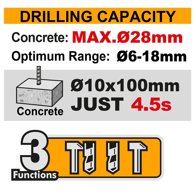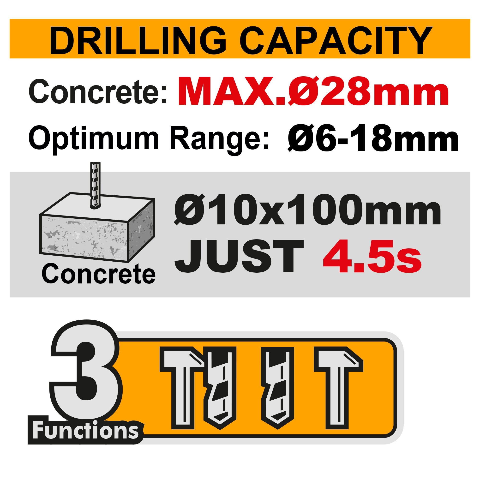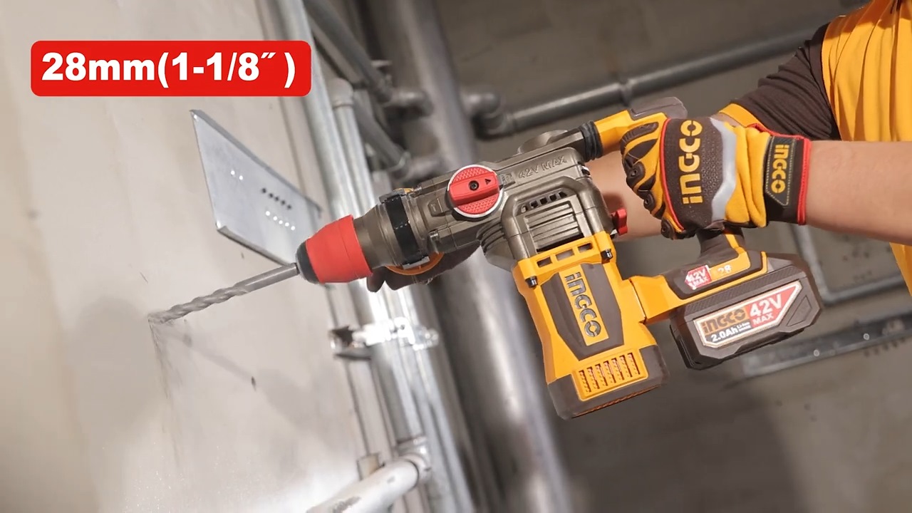INGCO 42V BL 28MM 3-MODE ROTARY HAMMER 2X2.5AH & CASE CRHLI422882