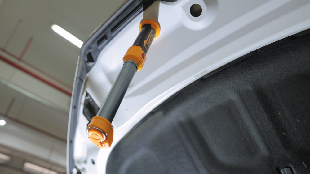 Handle features a magnetic base for easy metal surface attachment