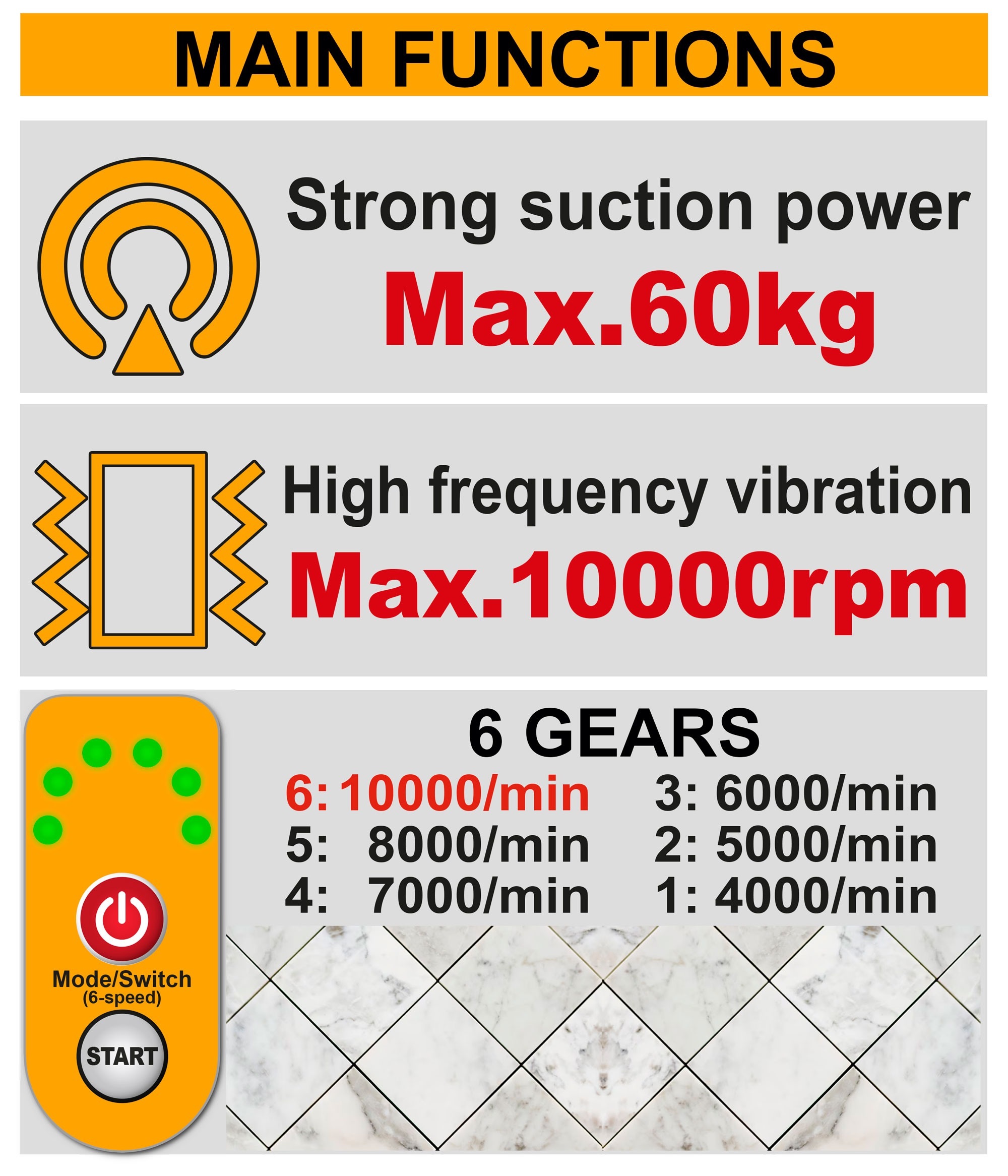 Vibrational frequency:0-10000rpm