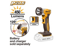 Home » Power Tools - Cordless » Bare Units » INGCO 20V LED WORK LAMP 8W 450 LUMENS CWLI2058 (BARE UNIT)