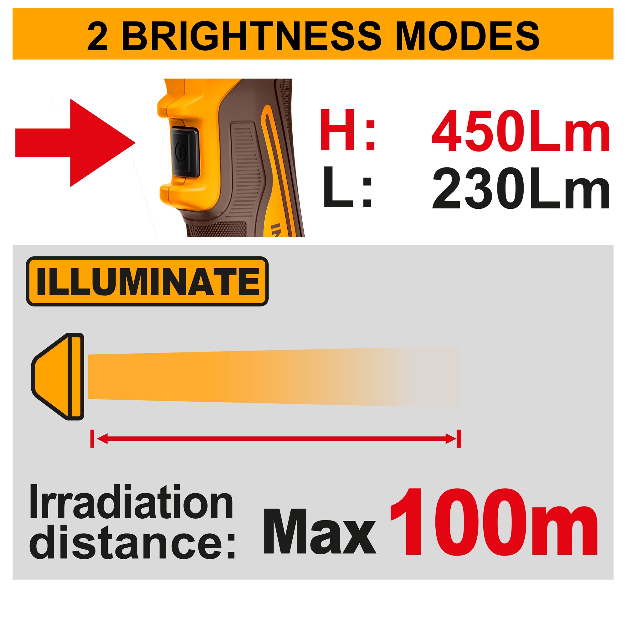 INGCO 20V LED WORK LAMP 8W 450 LUMENS CWLI2058 (BARE UNIT)