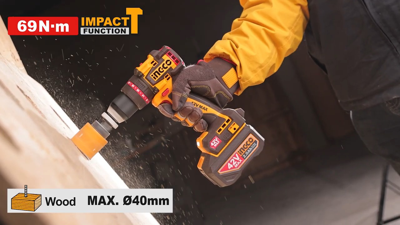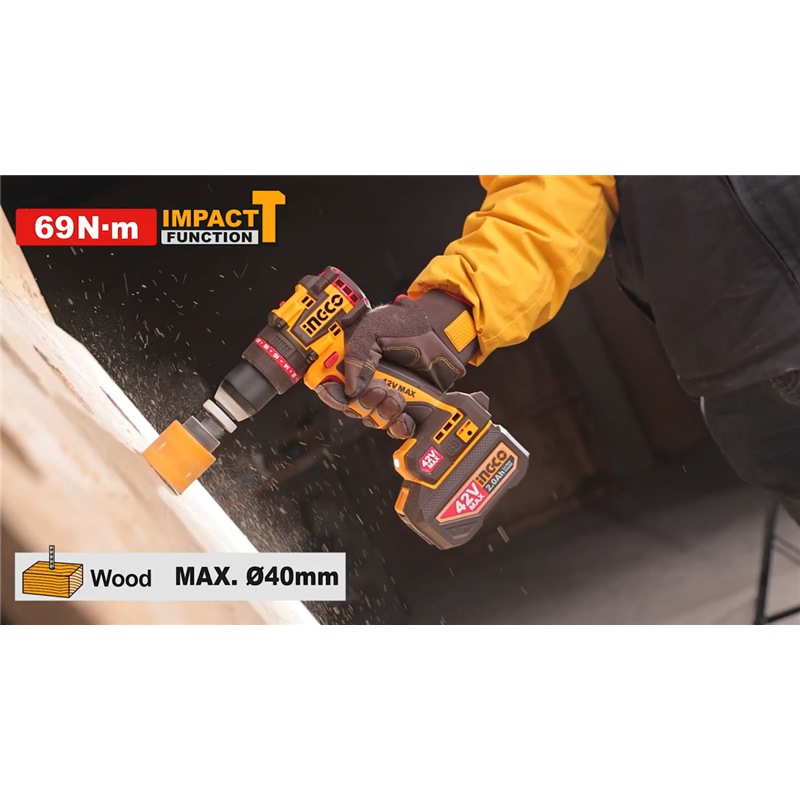 INGCO 42V BL COMPACT IMPACT DRILL 99NM 2X2.0AH & CASE CIDLI429982