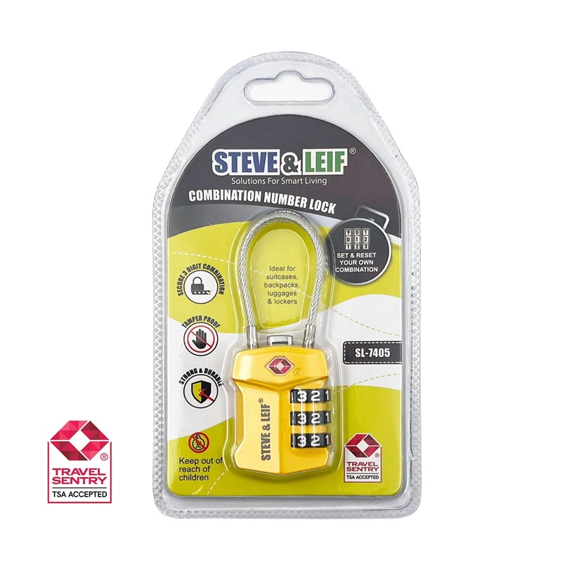 Steve & Leif Wire Shackle TSA Luggage Combination Lock are travel sentry approved locks allows TSA screeners to inspect and re-lock your baggage without damaging the lock. With this lock, you can lock all your belongings and travel without worrying the security of your valuables. Designed with a wire shackle which is strong and durable to withstand the rigors of baggage handling and to prevent theft. The best feature about wire shackle is it can easily be thread through various zippers. You can use them to thread together several pieces of luggage or baggage. Combination codes are made up of three numerical digits which allows you to easily set and reset your own combination. Comes with distinct color to make your luggage easier to identify.