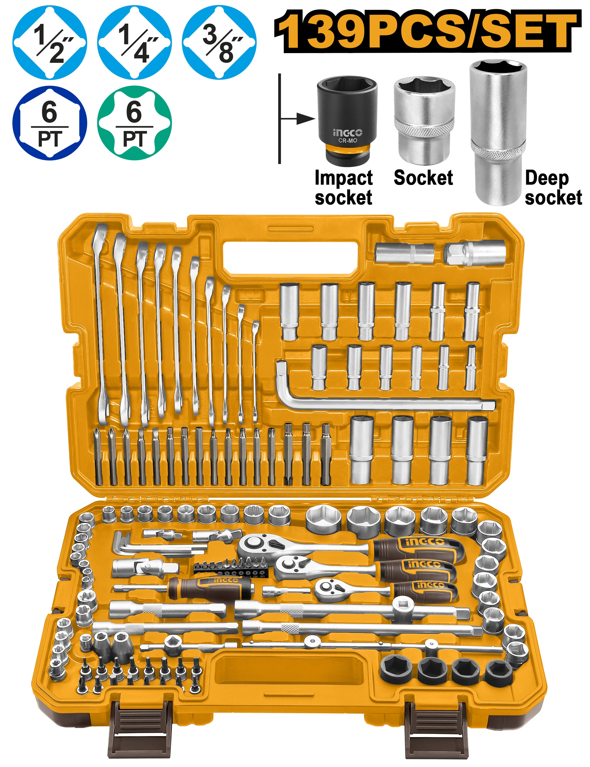 Home » Hand Tools » Hand Tool Sets & Accessory Kits » INGCO 139PCS COMBINATION HAND TOOL SET HKTHP21391