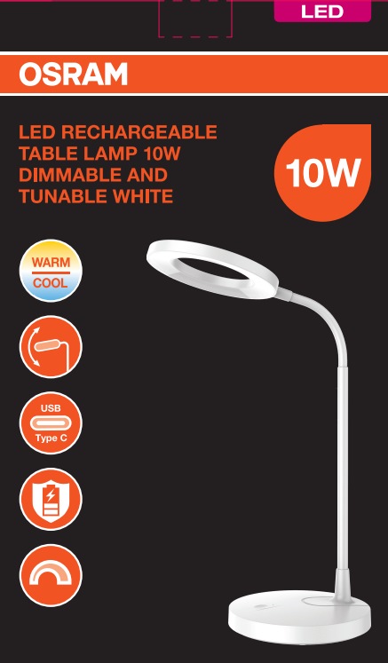 Home » Electrical & Lighting » Flashlights & Portable Lighting » OSRAM 10W LED RECHARGEABLE TABLE LAMP TL10WTW/DIMRECH