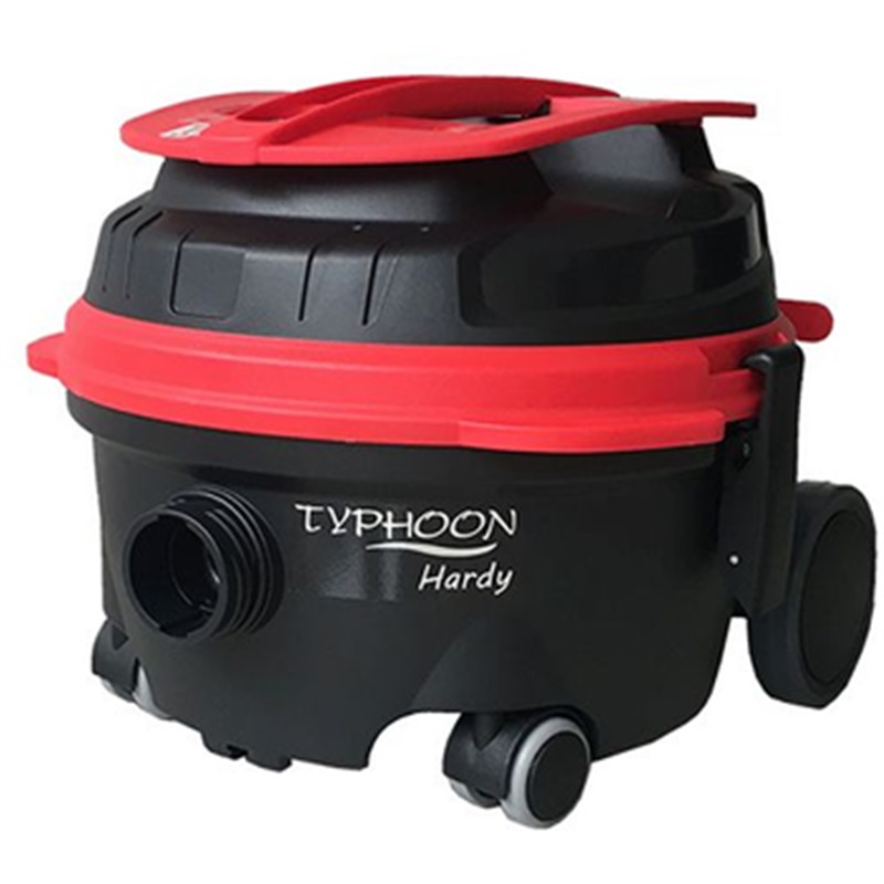 KLENCO TYPHOON HARDY DRY VACUUM CLEANER - 230V KLENCO Typhoon Hardy professional dry vacuum cleaner with 900watts high efficiency vacuum motor at 63 dB(A) low sound level, ergonomic handle with integrated cable wrap, 12L heavy duty tank with front castors and large rear wheels for easy manoeuvring. Unit completes with standard accessories.
