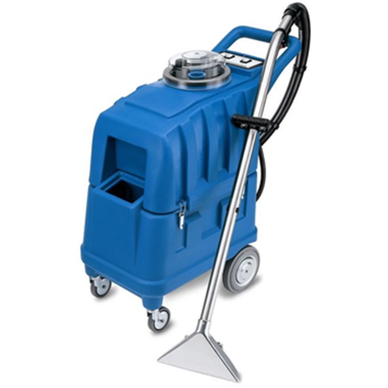 The hot water unit removes food stains and heavy soils from carpets and upholstery quickly and easily. With low noise level and powerful vacuum motor, this machine is ideal for large area applications such as hotels, departmental stores, and restaurants. This larger unit also comes with polyethylene tanks and drain hose.