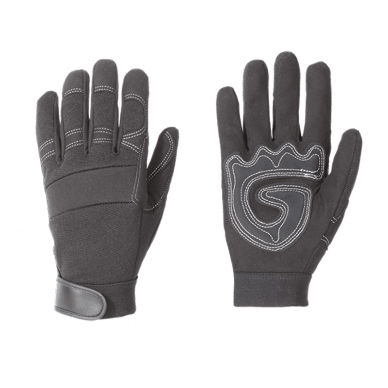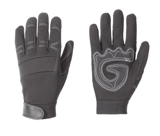 These PVC palm padded gloves feature an adjustable hook-and-loop cuff for perfect fit and feel. It features form-fitting 4-way stretch spandex and neoprene knuckle panel on top of hand for optimal comfort and flexibility. Synthetic leather palm with PVC patches and reinforced thumb saddle provides added durability.