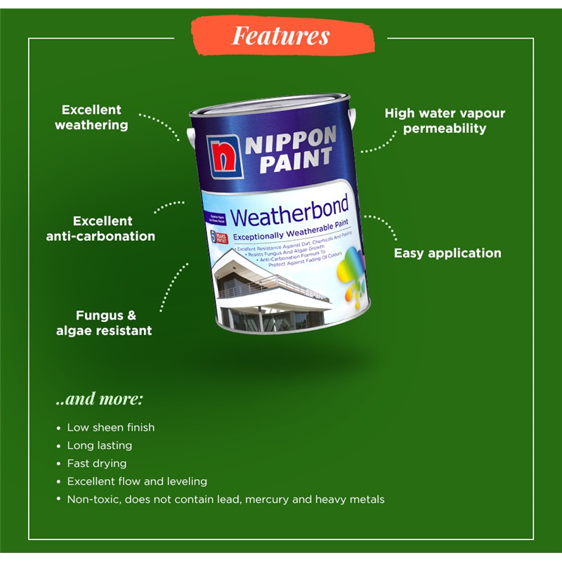 5 Litre & 20 Litre can available: Nippon Paint Weatherbond 5L, Nippon Paint Weatherbond 20L