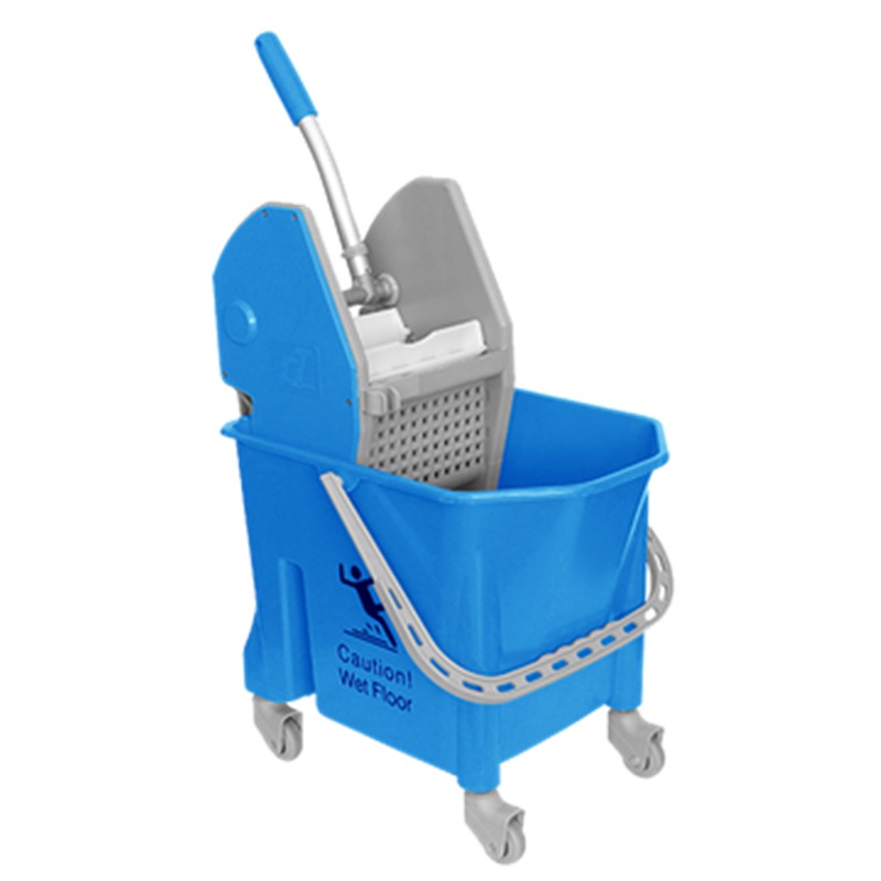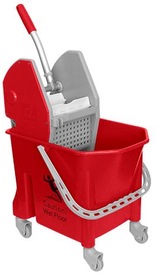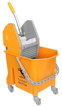Kleanway Single 25 litres polypropylene mop bucket on 4 x Ø80mm castors with bumpers and complete with heavy duty down-press mop wringer.