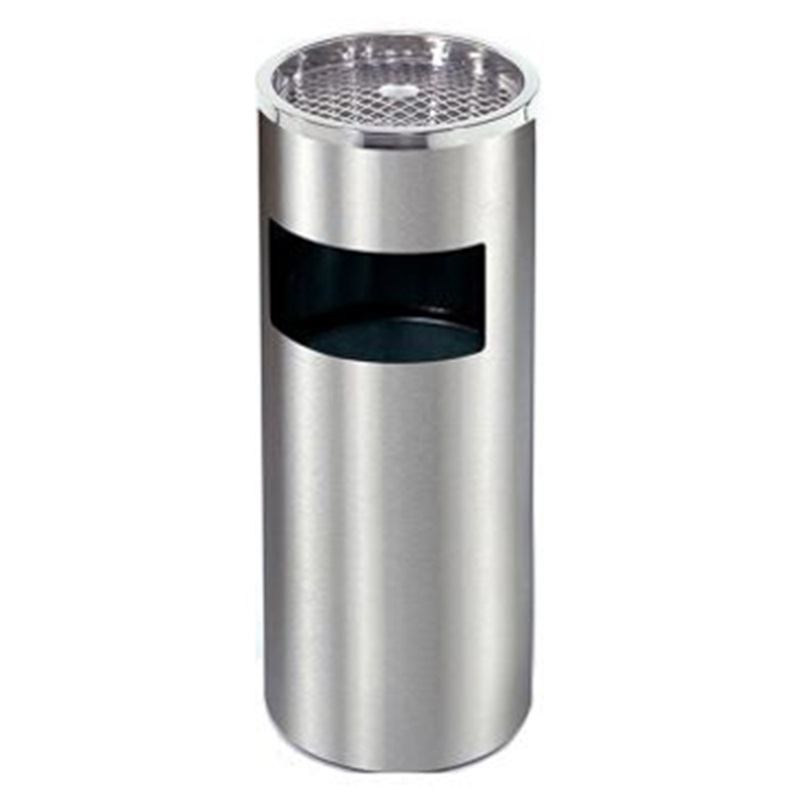 KLENCO ENVON Round litter bin with ashtray cover in stainless steel c/w galvanized inner container.