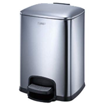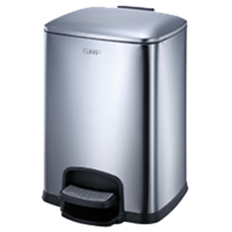 ENVON Rectangle Pedal Bin in finger-print resistant stainless steel with soft-closing lid by air suspension mechanism and c/w plastic inner container.