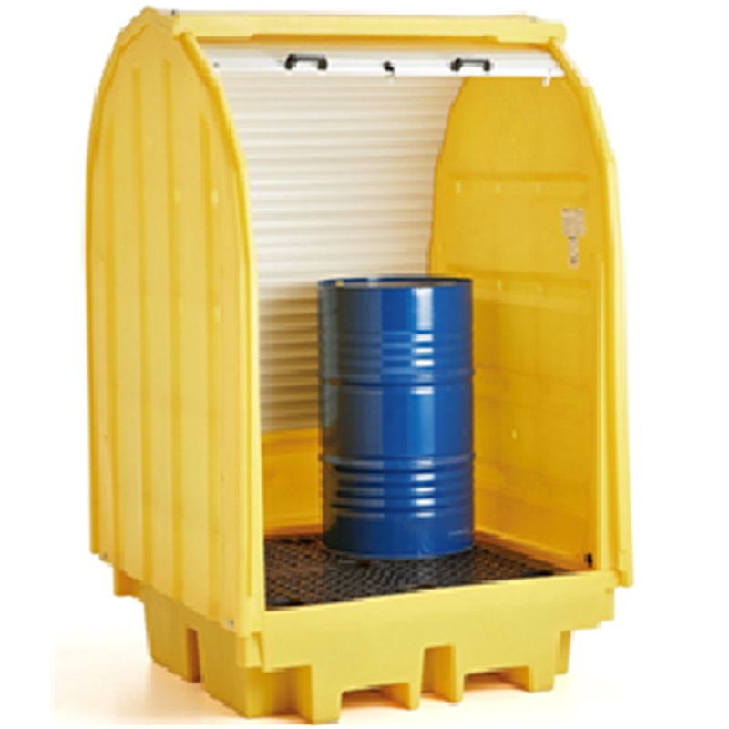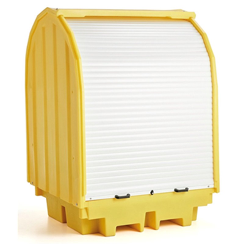 This Spill Pallet comes with a hard cover & roller shutter door fitted with a central lock hole for a padlock and a small lip for easy opening and closing of the door. Manufactured from medium density polyethylene and backed by a 3 year guarantee.  Consequently, the product is a durable, hardwearing.