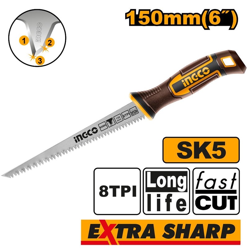 Home » Hand Tools » Cutting & Sawing Tools » INGCO 6" WALL BOARD SAW HEAT TREATMENT TEETH 8TPI HWBSW1506