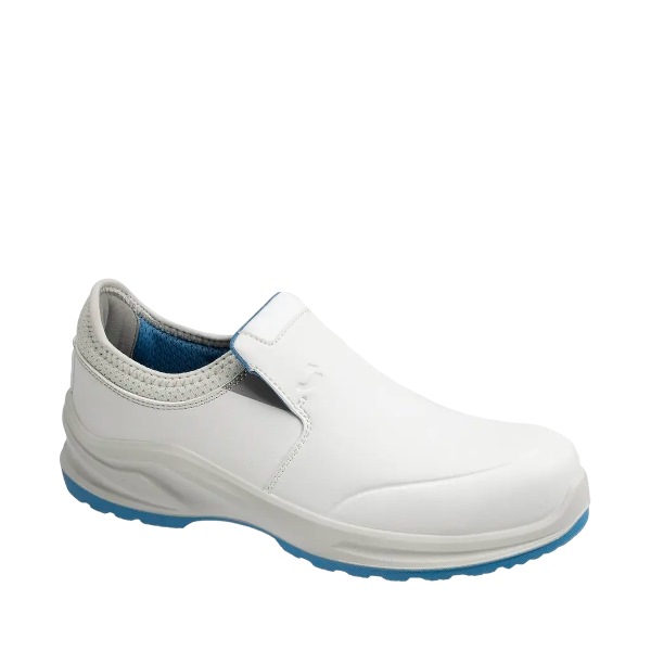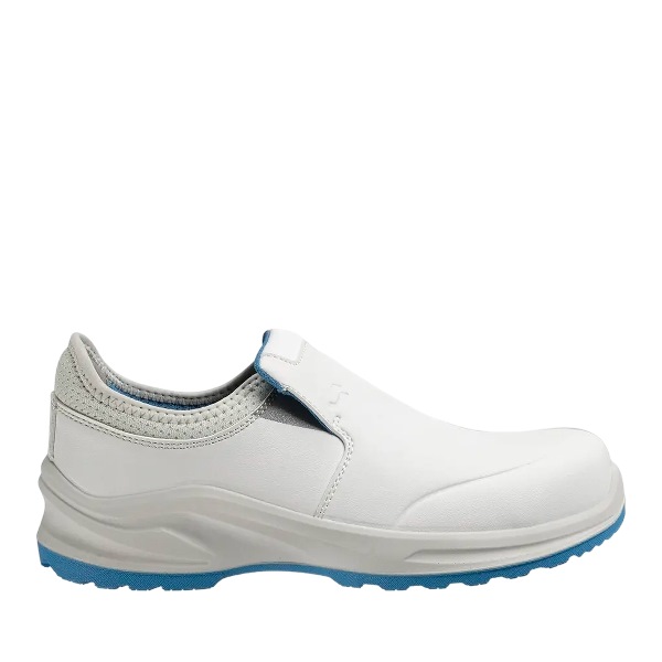 Designed for professionals in food, healthcare, and painting, the MODULO PURE slip-on safety shoe features an easy-to-clean, stain-resistant Lorica upper and a non-marking Tiger Grip rubber outsole that offers an extreme level of grip and traction. The rotation circle on the forefoot allows smooth pivots while maintaining grip. Completely metal free and vegan, this shoe combines safety, comfort, and hygiene in one sleek design.