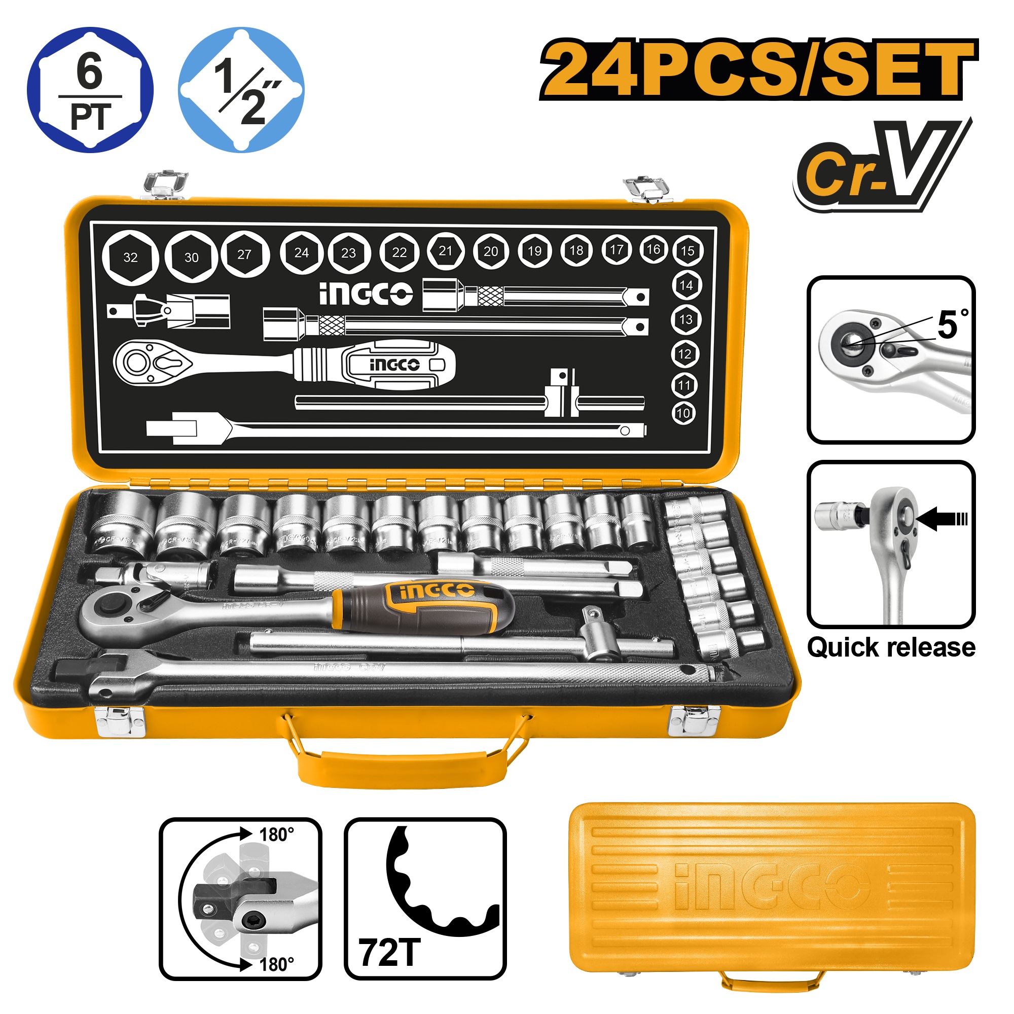INGCO 24PCS 1/2" DR. SOCKET SET 10-32MM METAL BOX HKTS12242