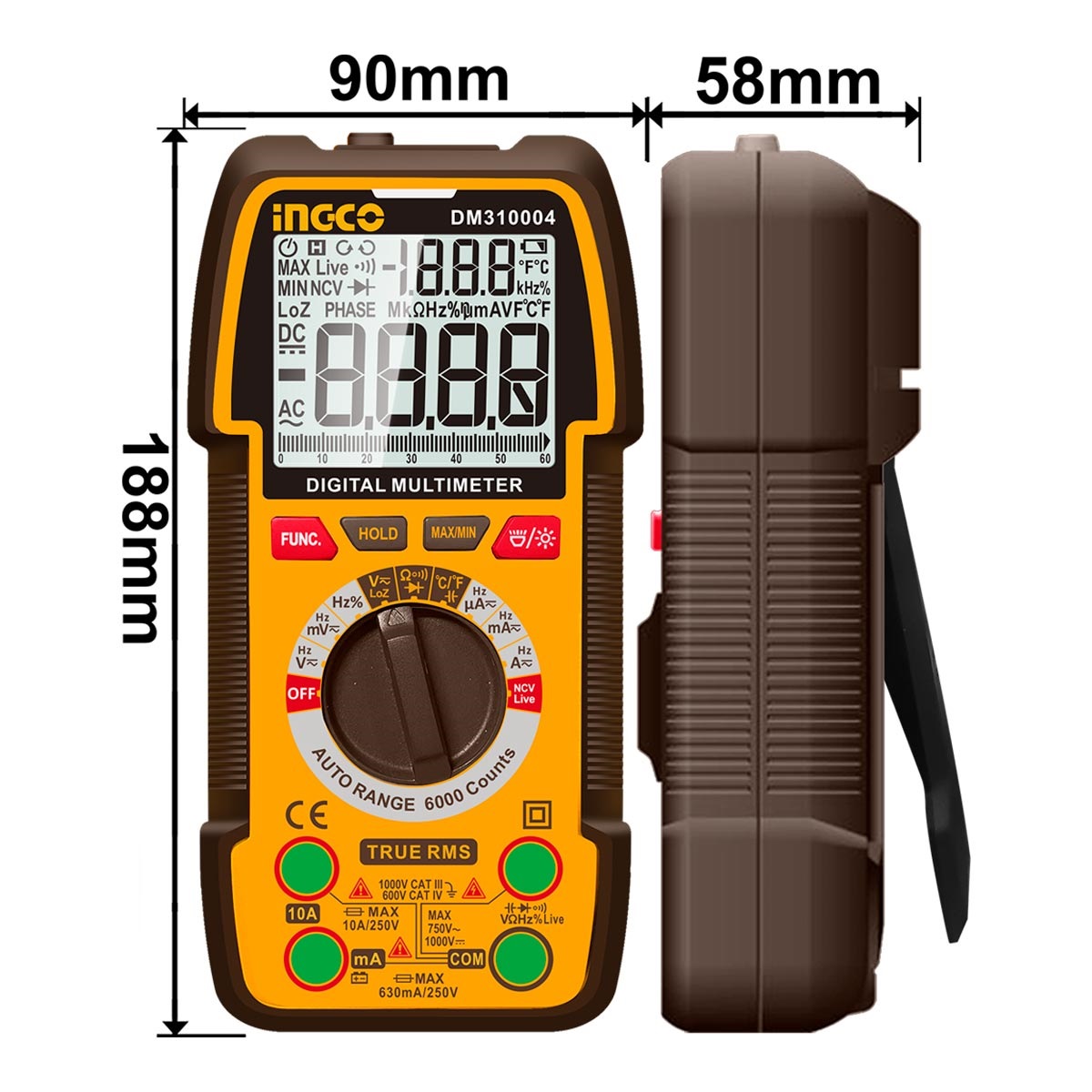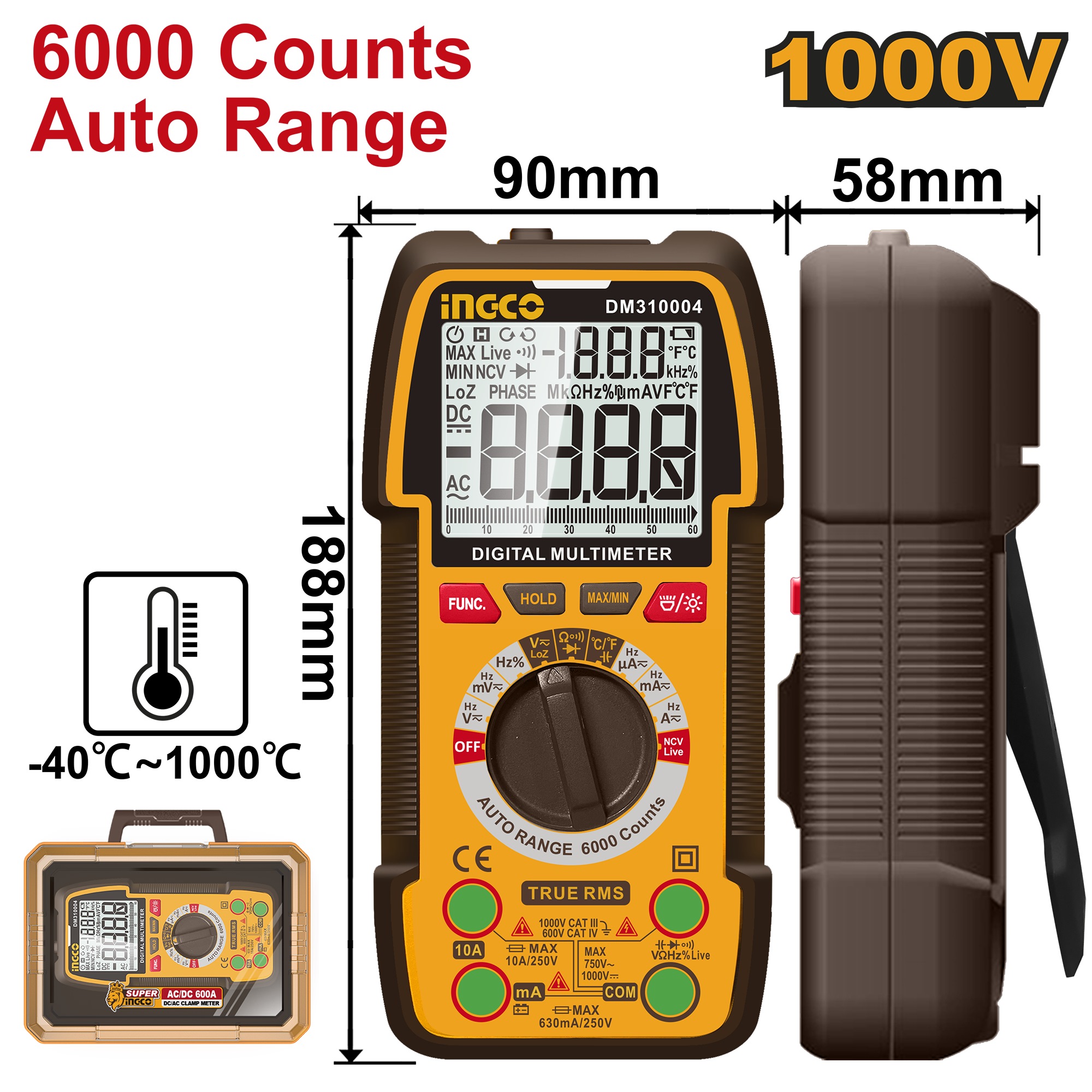 INGCO DIGITAL MULTIMETER 1000V 6000 COUNT AUTO RANGE DM310004