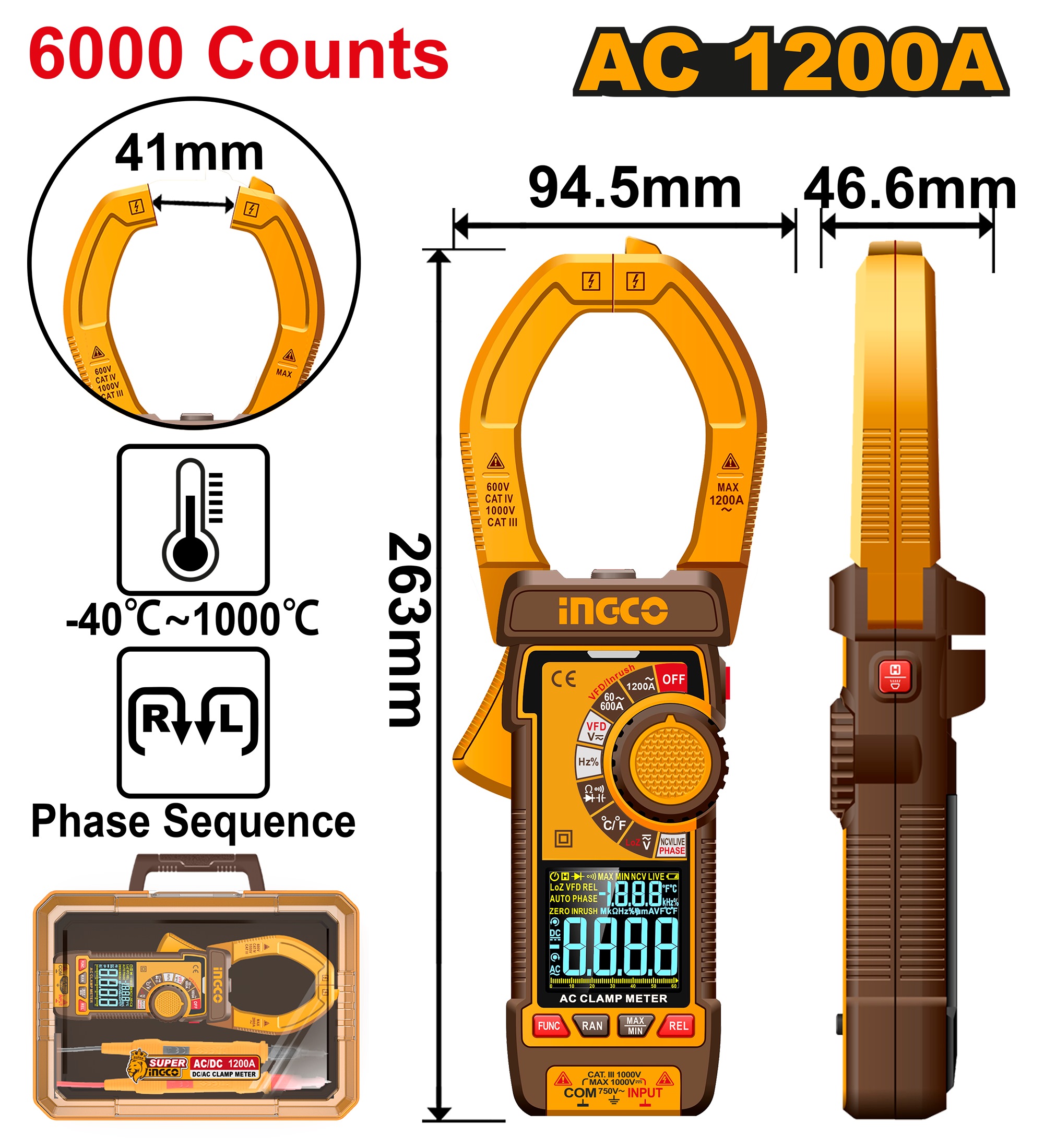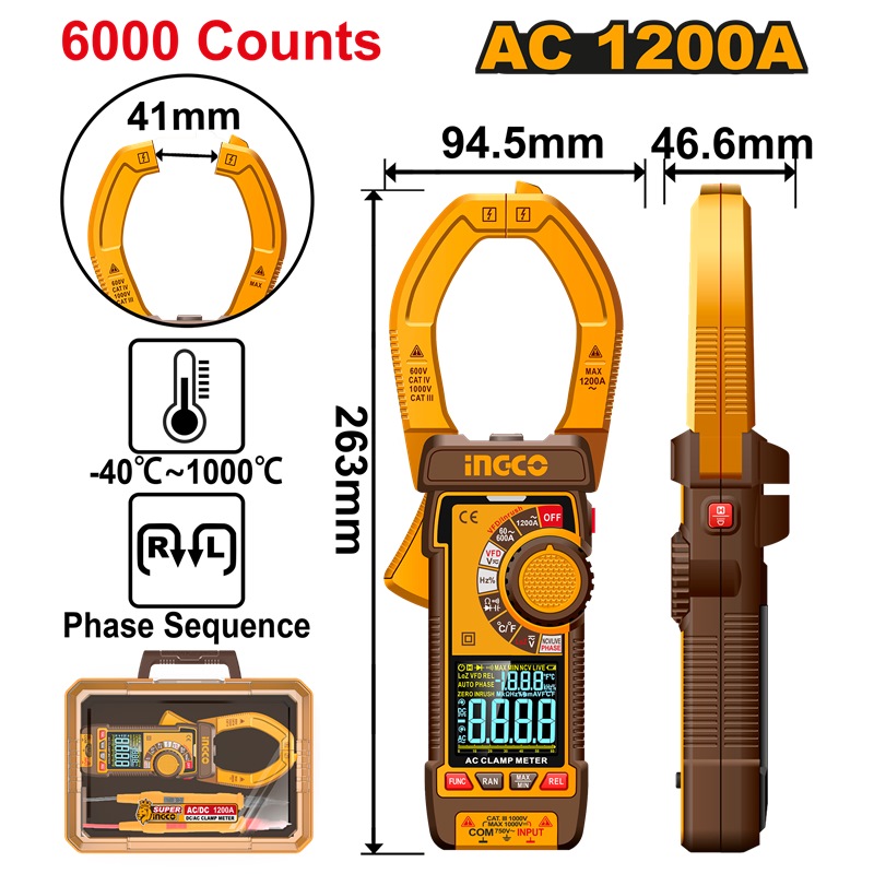 INGCO DIGITAL AC 1000A CLAMP METER DCM610001