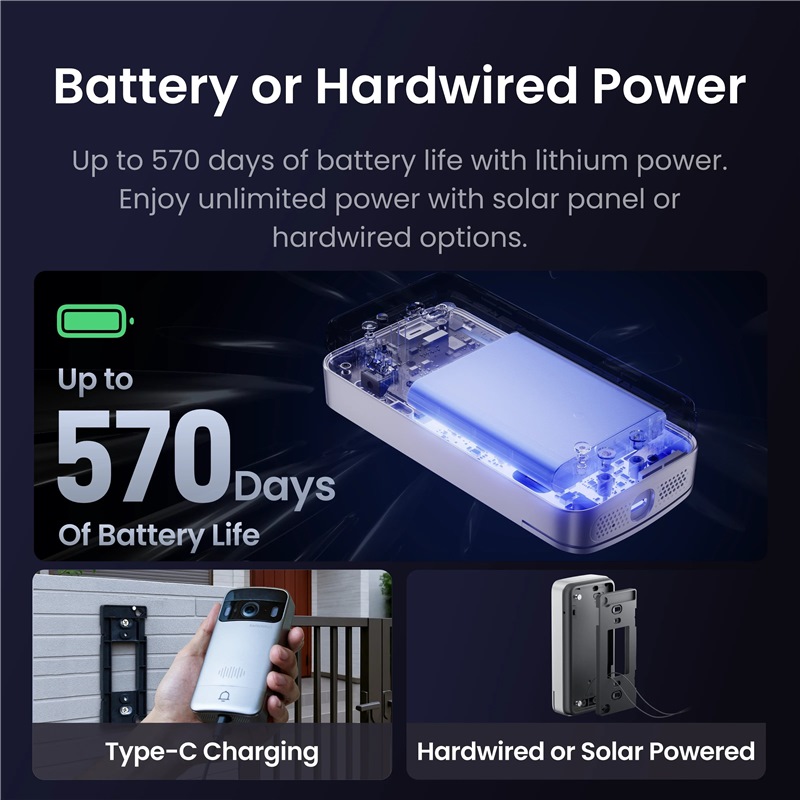 *Powered by a 5000mAh battery and ECoPower technology, SwitchBot Video Doorbell delivers exceptional battery performance, and flexible installation.(*Tested under SwitchBot Lab conditions. Actual performance may vary).