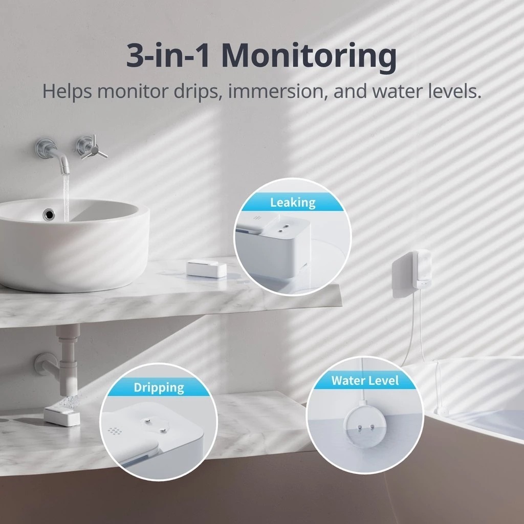 After connecting to Wi-Fi, you will be able to receive real-time email and app notifications remotely when dripping, leaking, or flooding is detected, without the need to purchase an additional hub. Share devices with family, and they can also check home status at any time. (2.4Ghz Wi-fi & BLE).