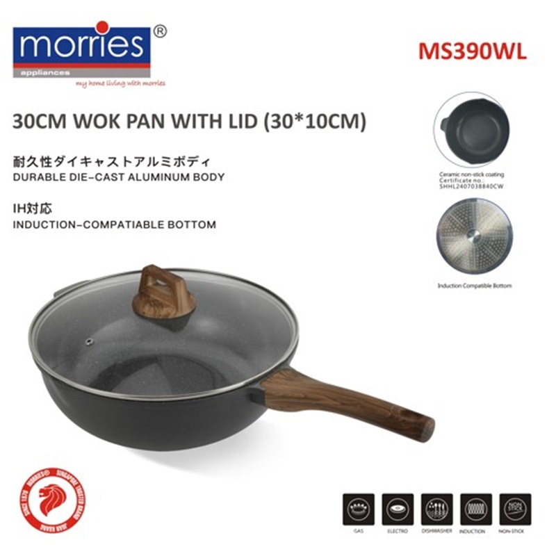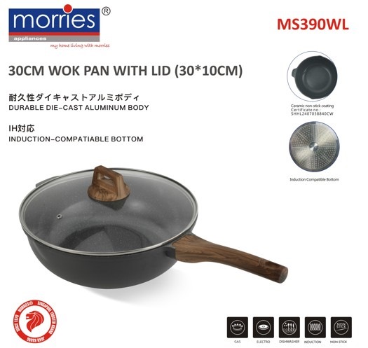 MORRIES 30CM WOK PAN WITH LID (30*10CM) MS390WL