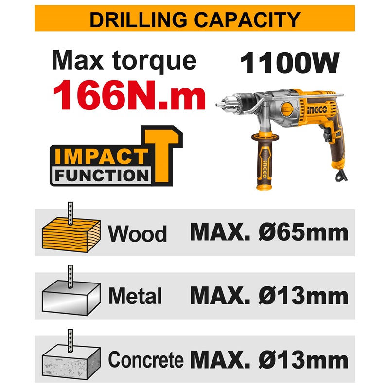 Home » Power Tools - Cordless » Cordless Drills, Impact Drivers & Wrenches » INGCO 20V BL HEAVY DUTY IMPACT DRILL 166NM 2X5 AH + BITS & CASE CIDLI201668