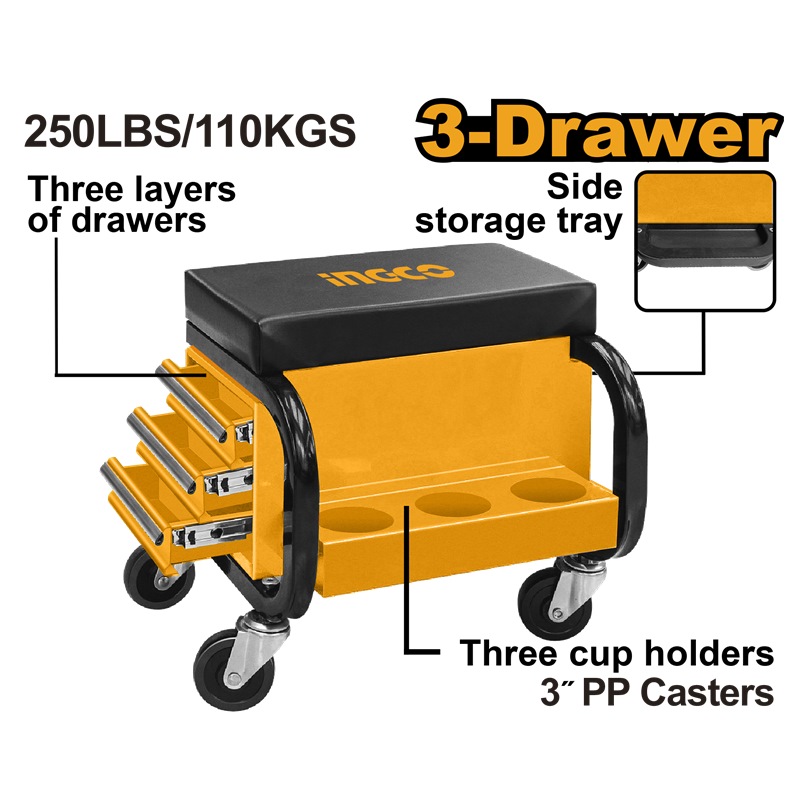 INGCO SEAT CREEPER W/3XSIDE DRAWERS+FRONT TRAYS HCS103