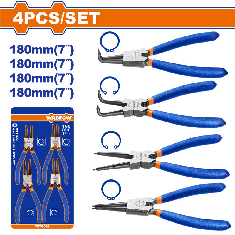 Home » Hand Tools » Pliers » WAFOW 4PCS 7" CIRCLIP PLIER SET WPS2604