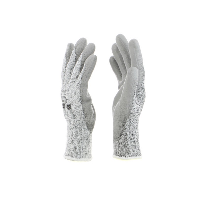 Cut resistant HPPE (high performance polyethylene) safety gloves with polyurethane coating