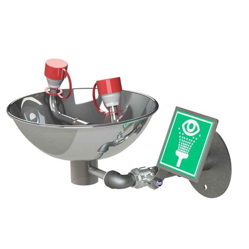 The Economy Range of Eye/Face Wash in 304 stainless-steel is wall-mounted with an open bowl.