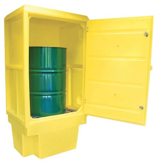 Rotationally moulded with a hinged lockable door the PSC3 is designed to allow you to store 1 x 205ltr drum in a vertical position and still have room to fit a small pump.