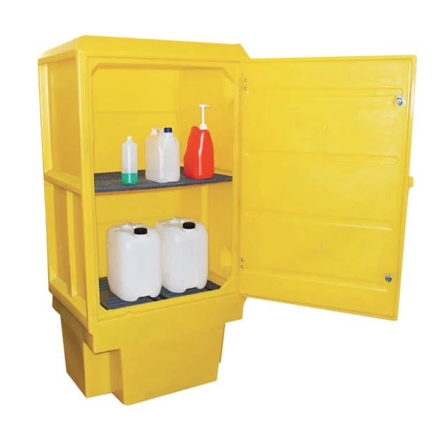 Rotationally moulded with a hinged lockable door and a shelf above the plastic mesh deck the PSC4 makes a great storage cabinet for small cans, tins and containers of up to 25ltr in size.