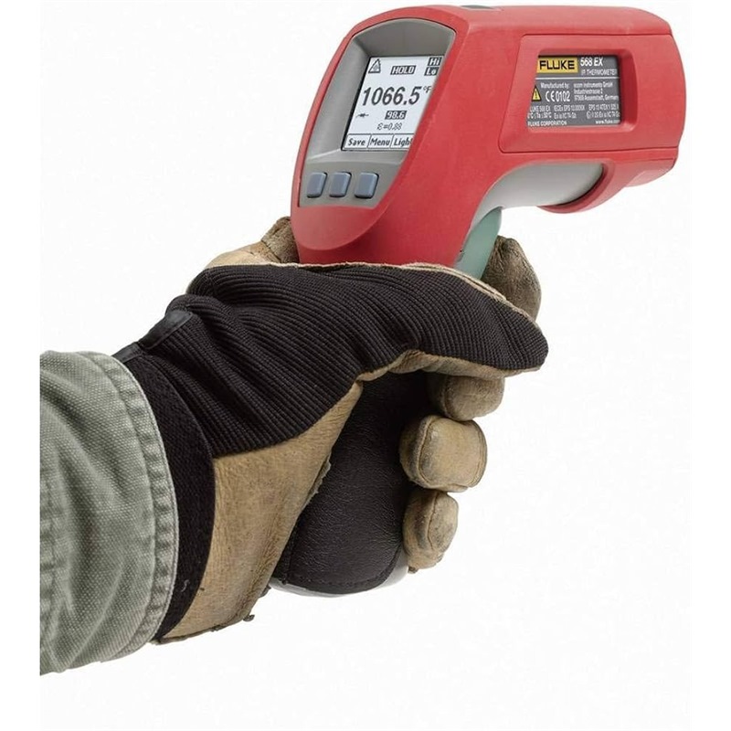The Fluke 568 Ex Intrinsically Safe Infrared Thermometer is certified by major rating bodies for use in Class I Div. 1 and Div. 2 or Zone 1 and 2 hazardous environments anywhere in the world. Whether you work in petroleum, chemical, oil and gas, or pharmaceutical environments, the 568 Ex allows you to carry the most trusted name in test tools into most Ex-rated areas around the globe. The simple, three-button on-screen menu interface is quick to use and makes even complex measurements easy. It takes just a few pushes of a button to adjust emissivity, record data, or turn on and off alarms. The 50:1 distance-to-spot ratio allows you to measure smaller objects from further away. And it also is compatible with K-type probes for contact measurements. Either way, you can count on the rugged, ergonomic design to stand up to tough conditions.