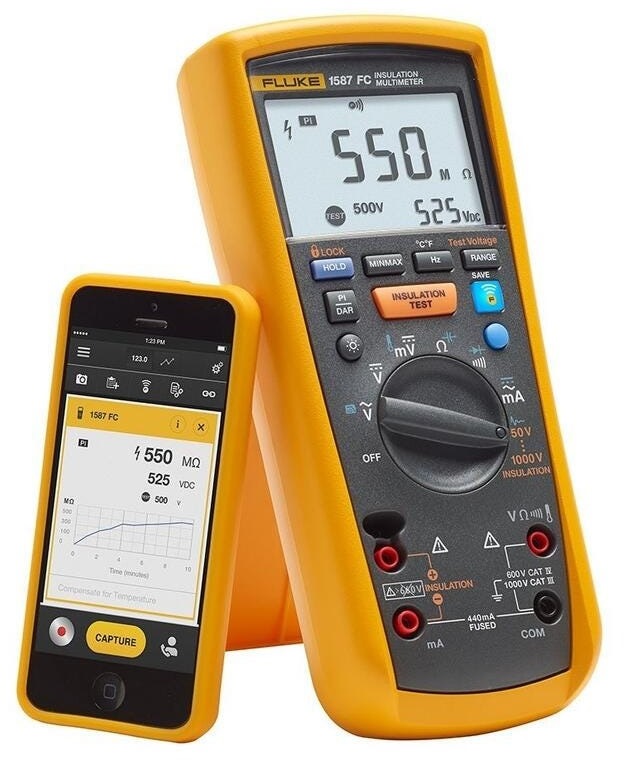 Battery life Meter use 1000 hours; Insulation test use: Meter can perform at least 1000 insulation tests with fresh alkaline batteries at room temperature. These are standard tests of 1000 V into 1 MΩ with a duty cycle of 5 seconds on and 25 seconds off.