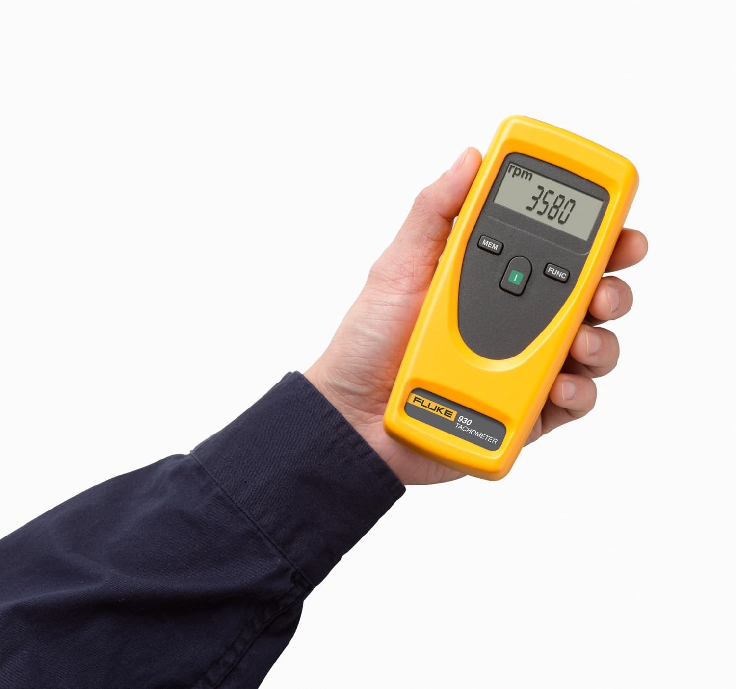 Fluke 930 is a handheld tachometer and is equivalent to a Fluke 931 with minimum configuration and can accurately measure the revolutions per minute (RPM) or surface speed and distance. With only the non-contact measuring function provided, it's more affordable and offers consistent quality.