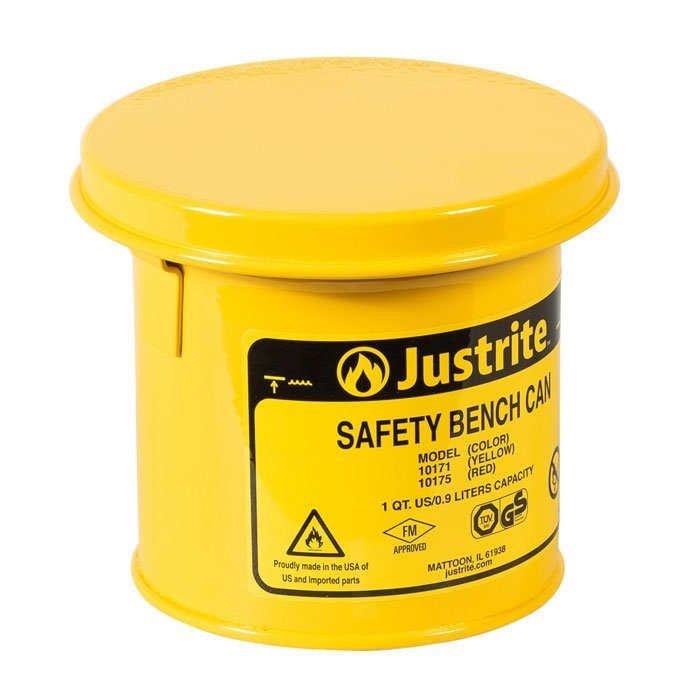 Home » Workplace Safety & Health » Safety Cans & Containers » JUSTRITE 1L/1 QUART CAPACITY STEEL BENCH CAN - 10171 (YELLOW)
