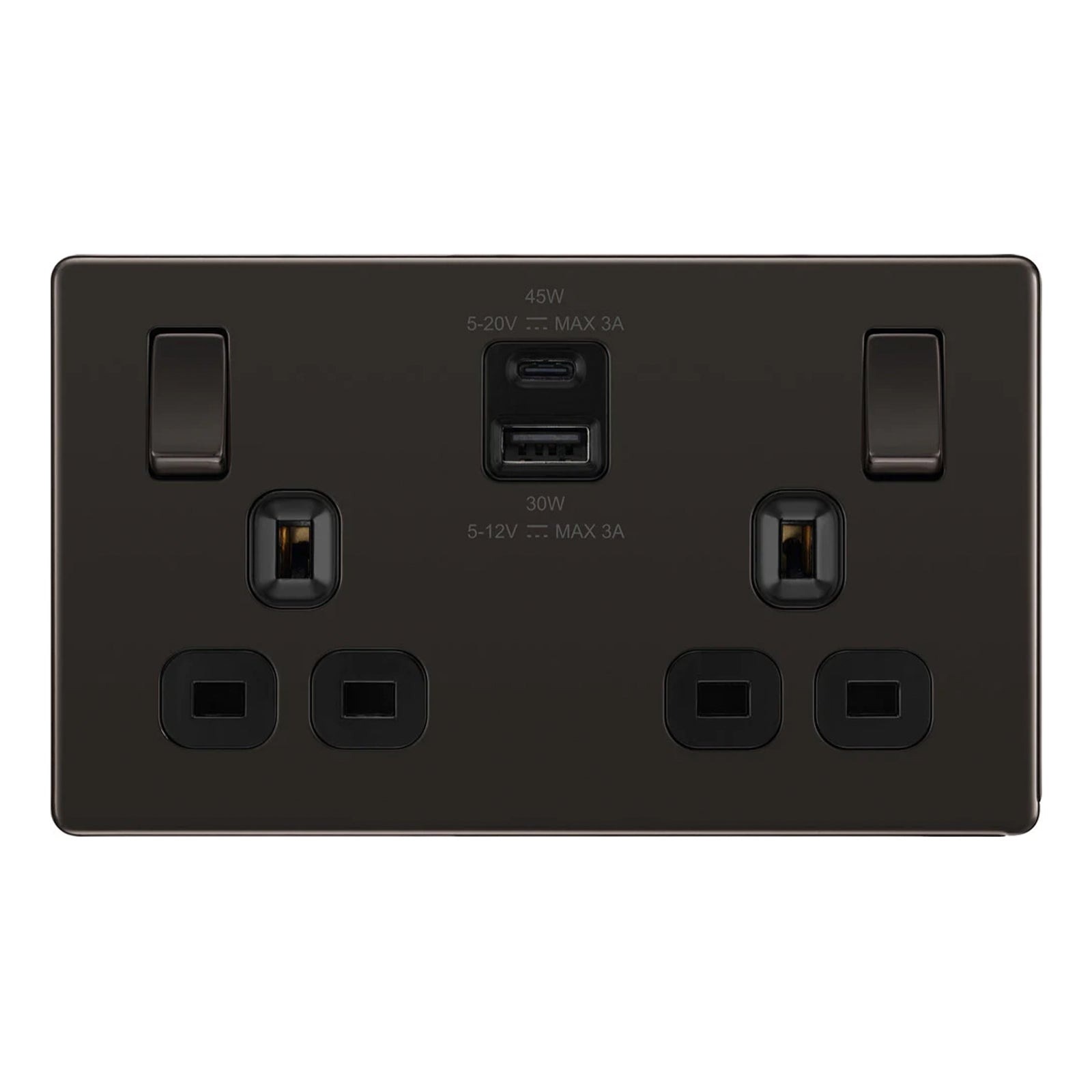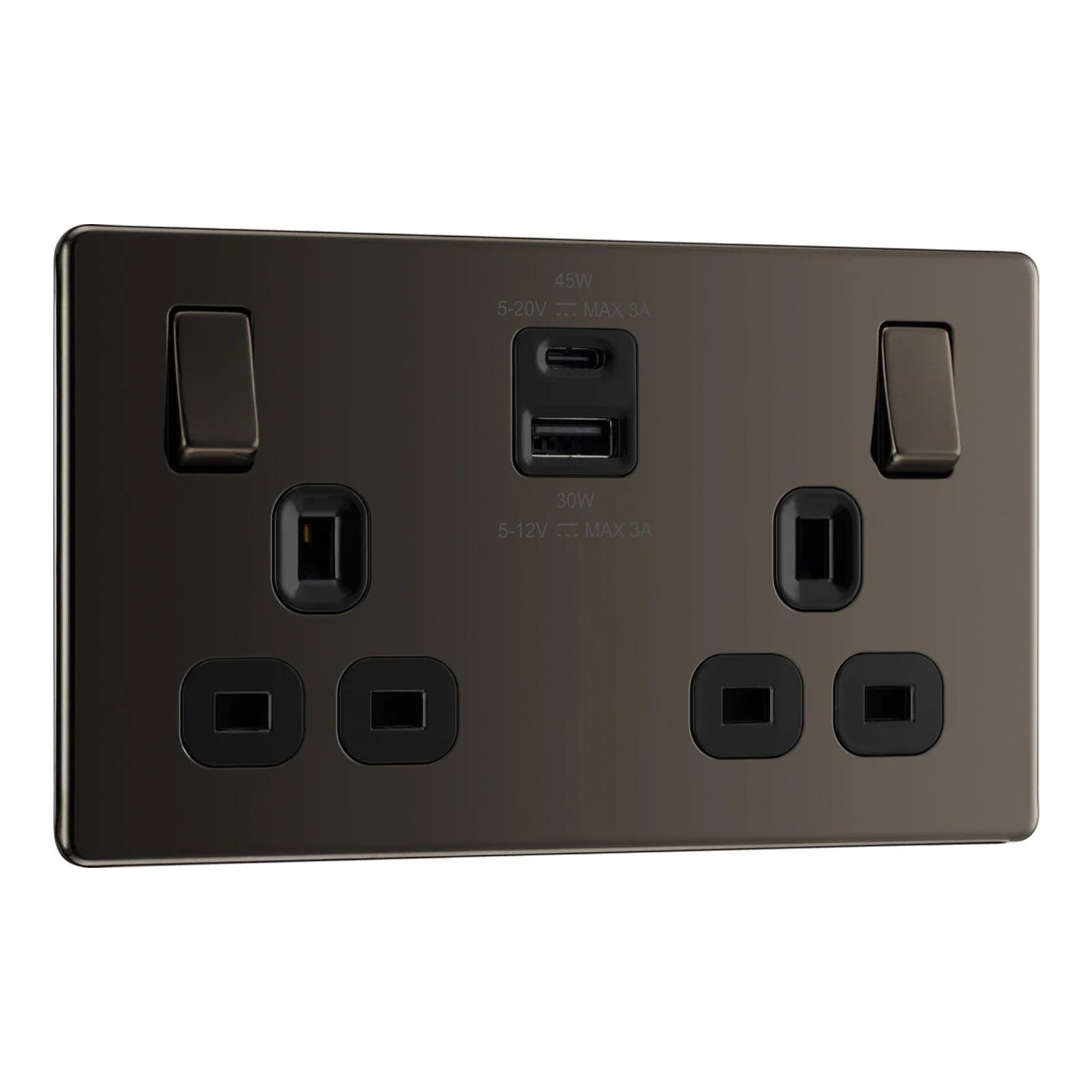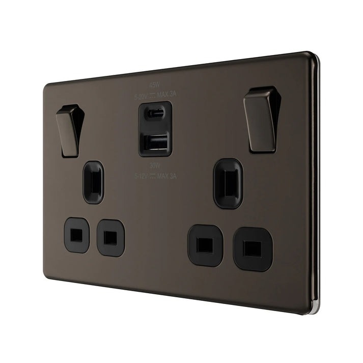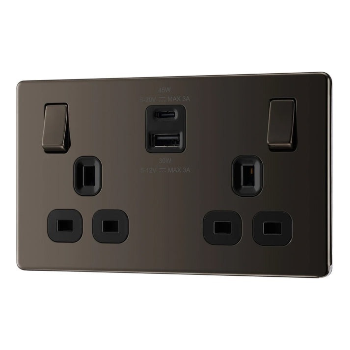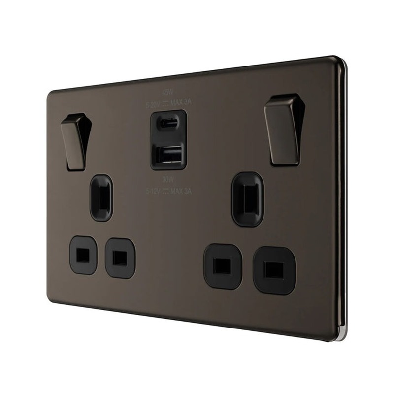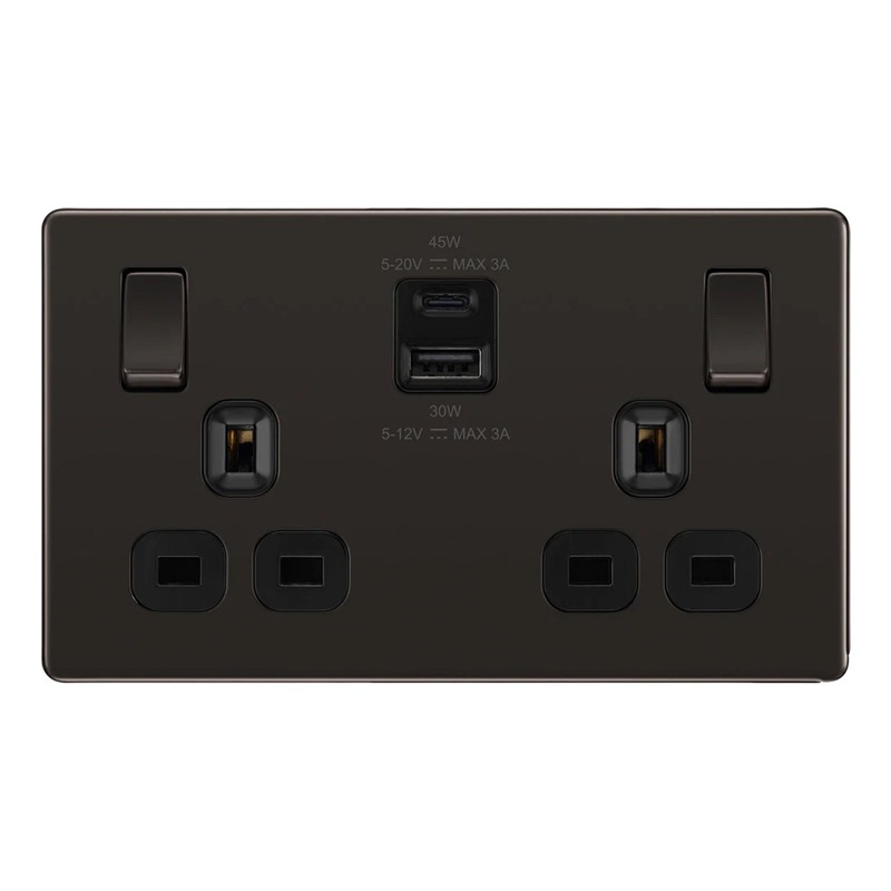 Home » Electrical & Lighting » Switches, Sockets & Plugs » BG 13A DOUBLE SOCKET WITH 45W USB 1C1A FBN22UAC45B
