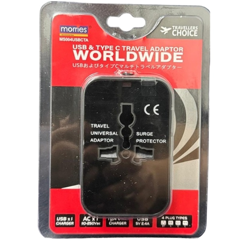 MORRIES 5V 2.4A USB A + TYPE C WORLDWIDE TRAVEL ADAPTOR MS004USBCTA