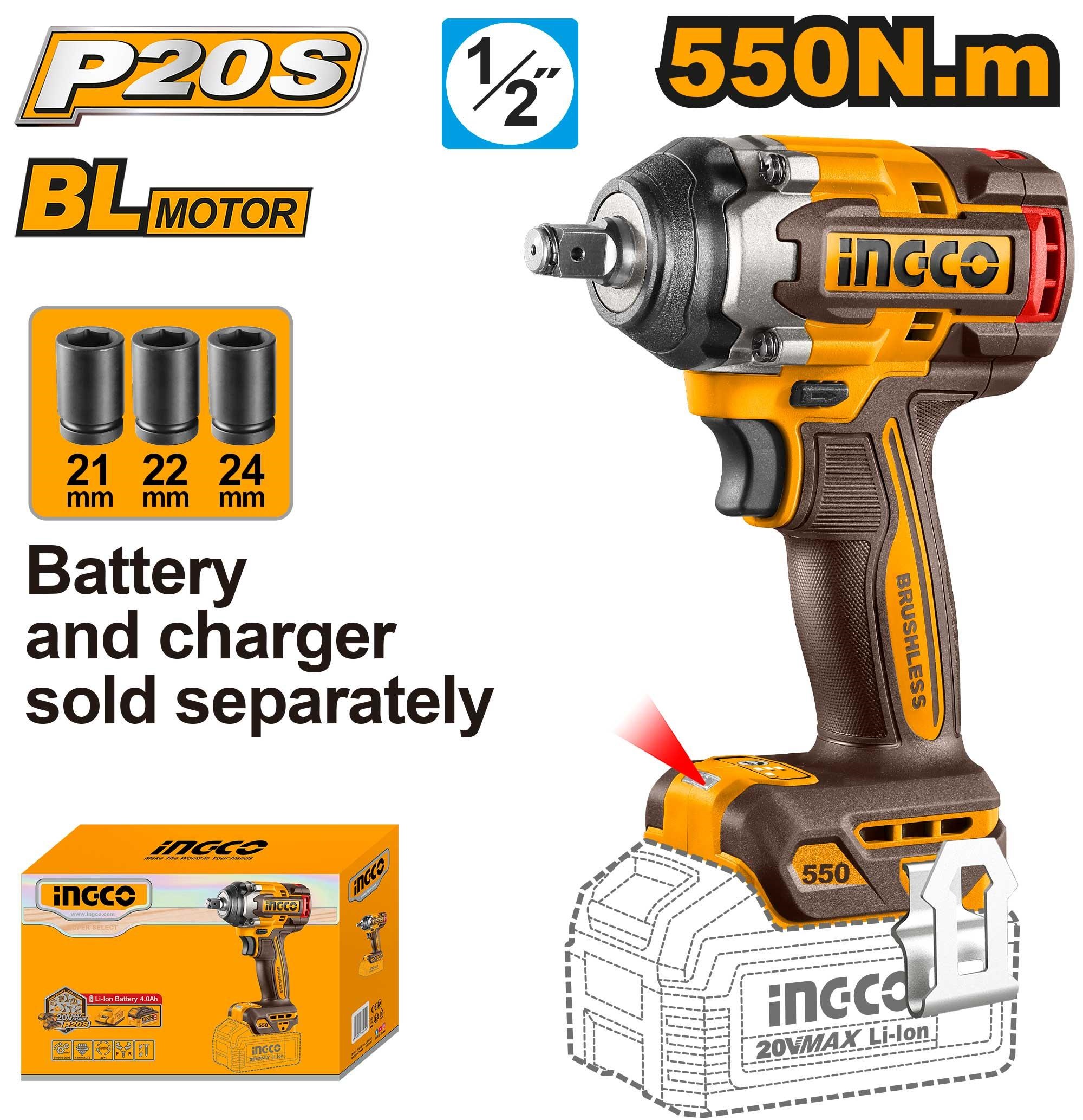 INGCO 20V BL 1/2" IMPACT WRENCH 550NM CIWLI20551 (BARE UNIT)